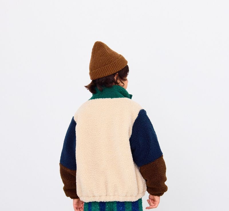 Color Block Polar Sherpa Jacket in Dark Green/Beige