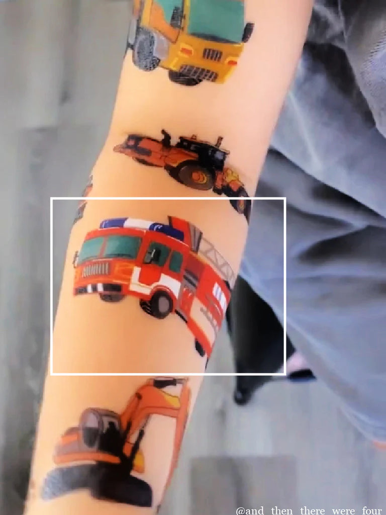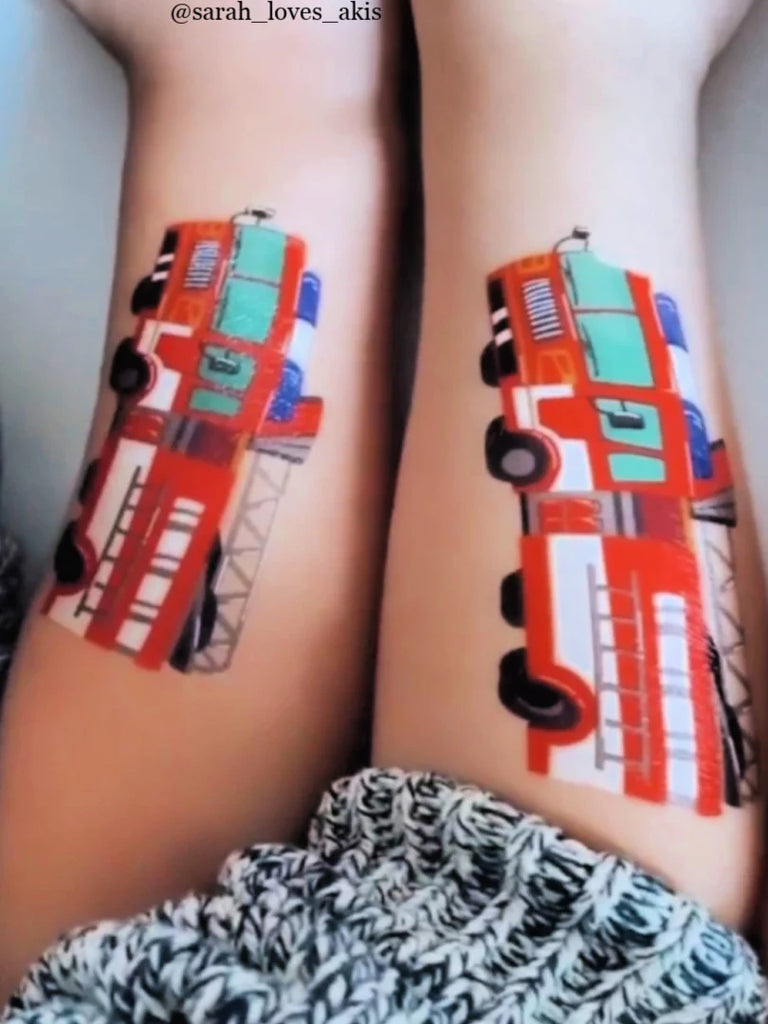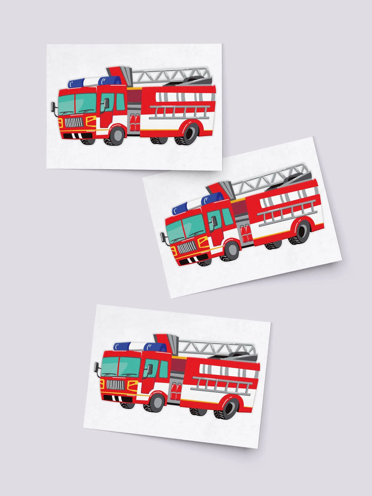 This bright red and white fire truck is equipped with all necessary tools for firefighting. Who's gonna be a brave fireman to rescue people from fire? Perfect for festivals, parties, or any special occasion, these temporary tattoos will make you stand out from the crowd!