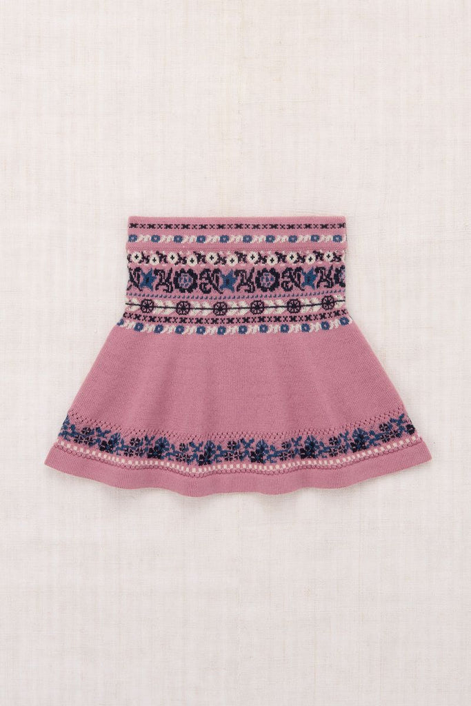 A skirt in a graphic fine-gauge Merino wool knit, featuring a skating silhouette, eyelet accents, and soft banded elastic waistband.