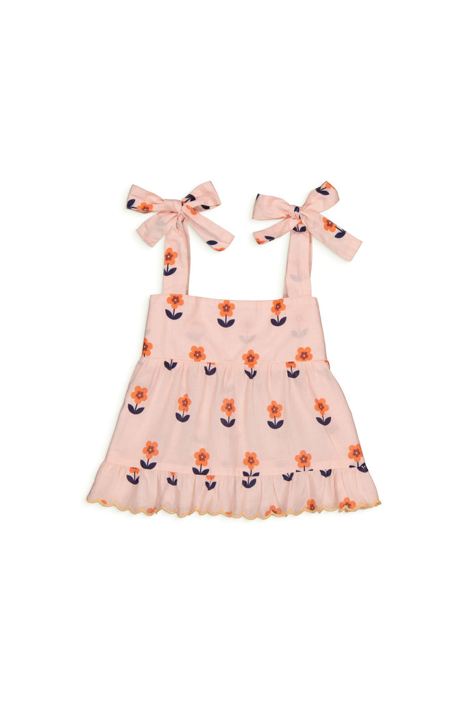 Voile strappy blouse in all-over print with bows on straps and elasticated smocks at back.