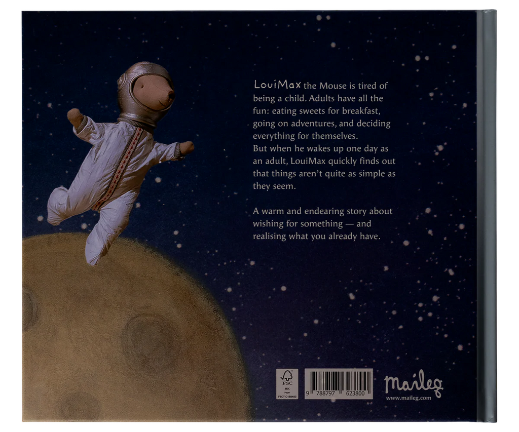 LouiMax the mouse is tired of being a child. Grown-ups have all the fun. A warm and amusing story of wanting something – and then realizing what you already have. The book has 56 pages with beautiful illustrations.