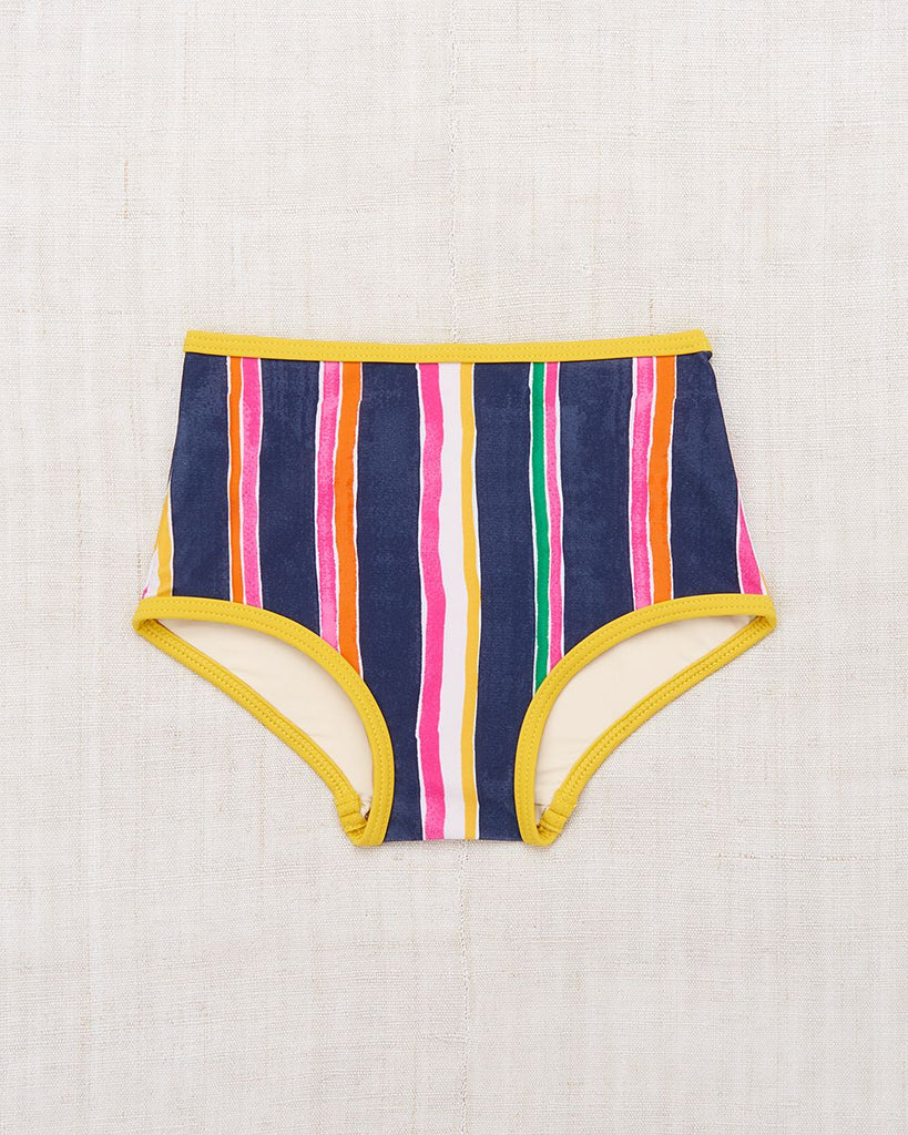 A lined classic brief with contrast trim and plenty of coverage. Our swim line is created with regenerated nylon, created from nylon waste (like fishnet and carpets), but doesn’t sacrifice comfort. Like the swimsuit you’re used to, this piece is soft on the skin, compact, and breathable, with UPF 50+ protection. Featuring this season's graphic print.