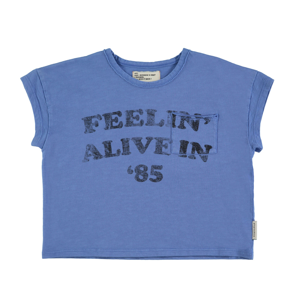T-Shirt in Blue w/ "Feelin Alive" Print