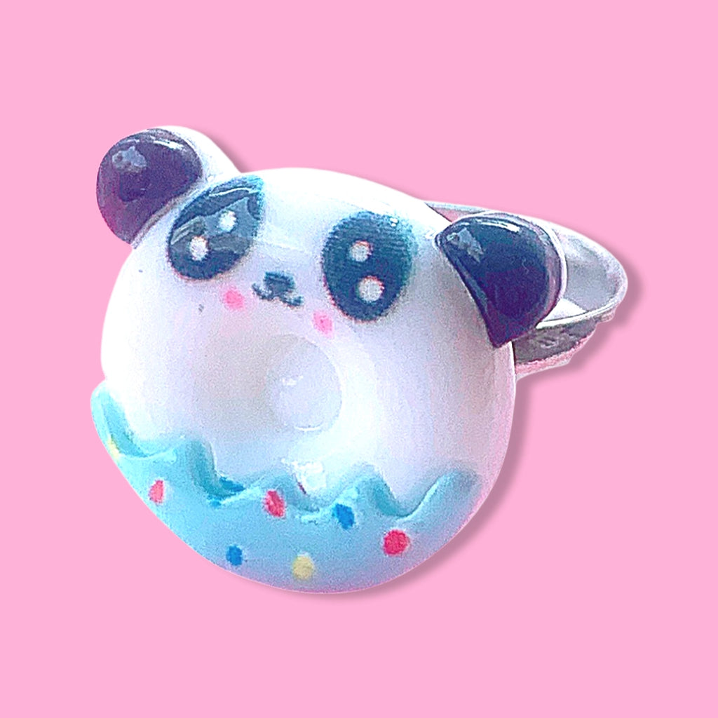 Cute little smiling animal donuts on an nickel-free adjustable ring.