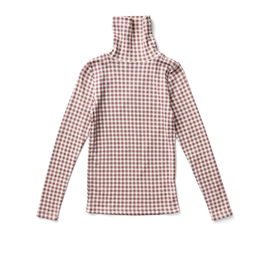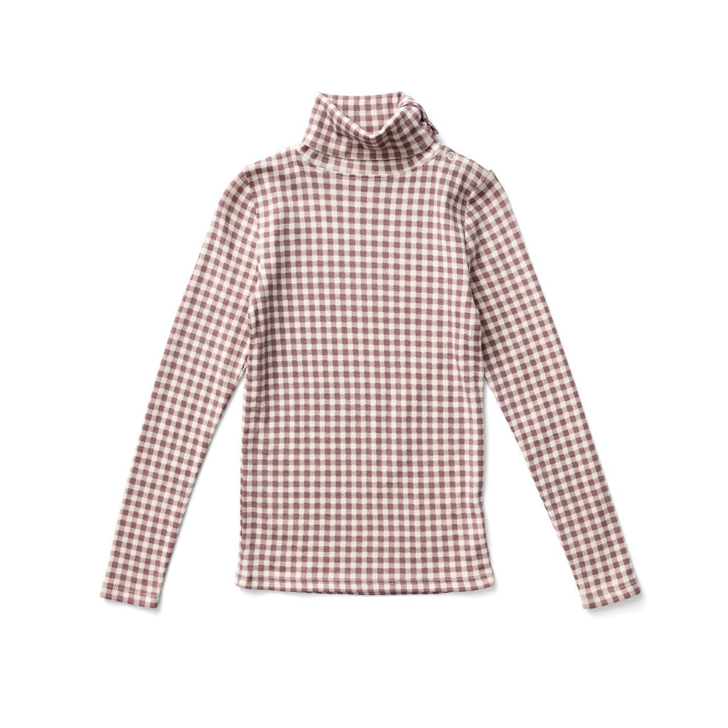 L/S Snap Turtleneck in Gingham Print, Cherry