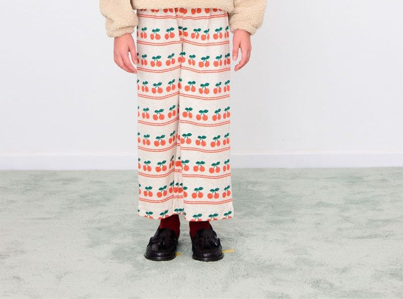 This cherry allover print rib pant is crafted from a soft cotton blend. Its clean design and allover print add a cool touch to any outfit. Featuring a relaxed silhouette with an elasticated waistband and adjustable drawcords, it offers extra comfort for everyday wear.