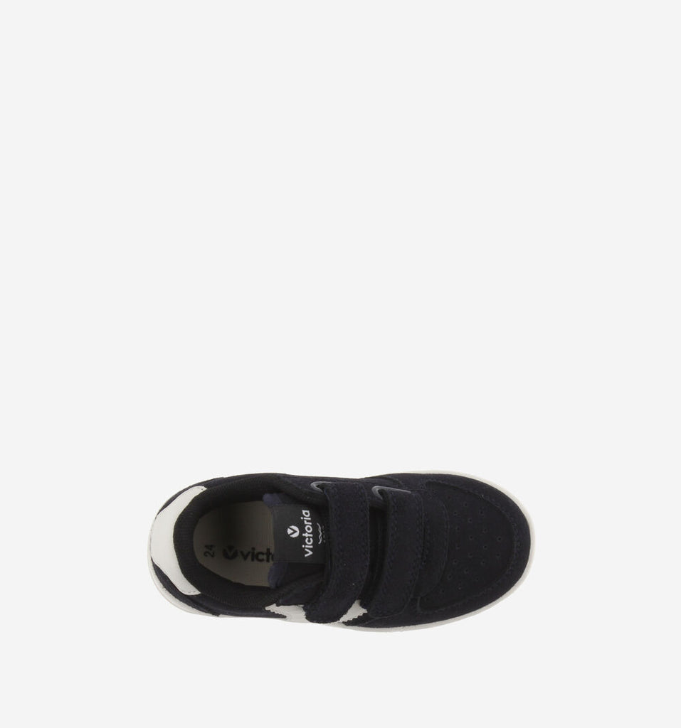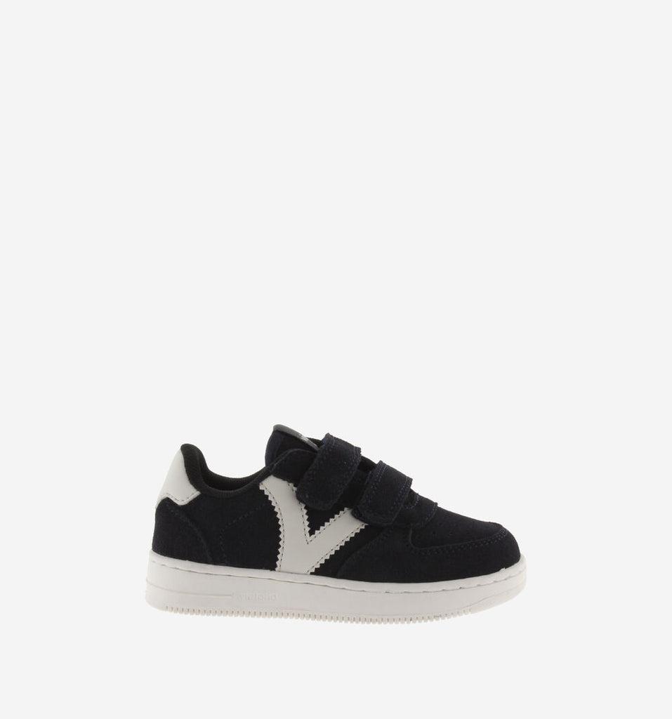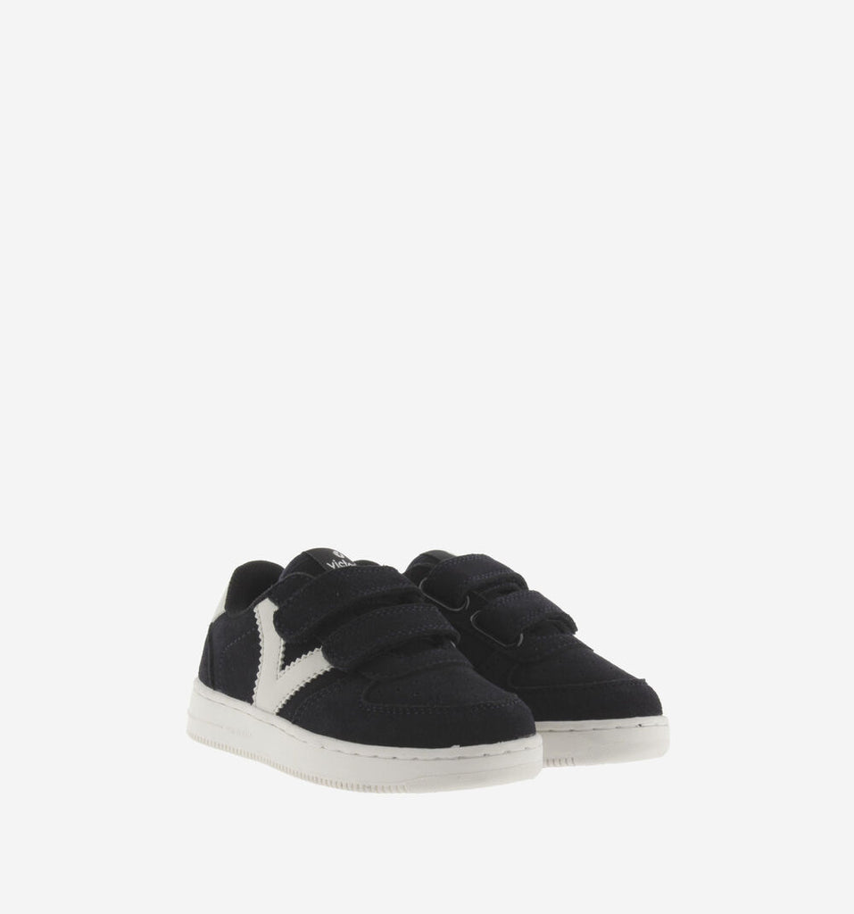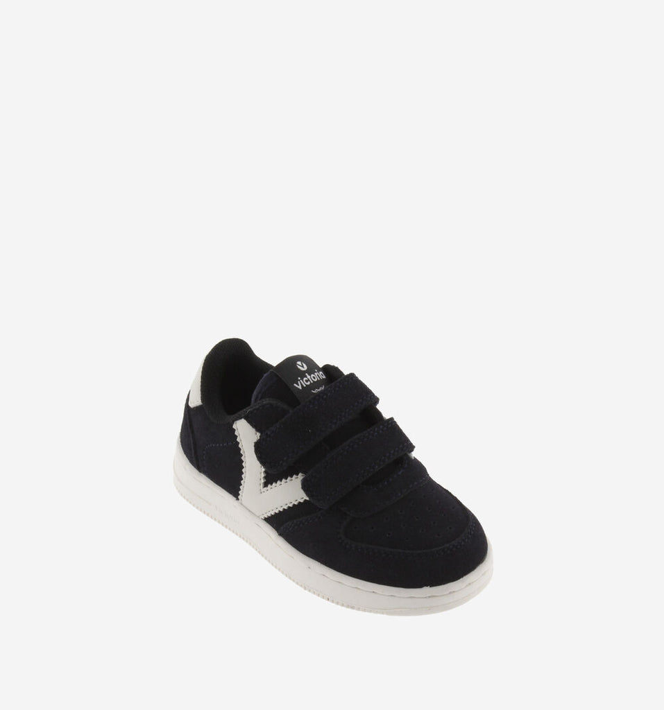 Kids' split leather trainers. Logo on the side and detail at the back in white faux leather. Fasten with straps for the perfect fit against the foot, making them easier to get on and off. They have a perforated upper for improved breathability.