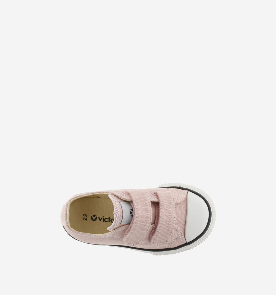 Children's trainers in canvas with rubber toe and a contrasting white sole. The double velcro strap makes them very easy to get on and off. Victoria side logo. They also come with a high-density insole for improved comfort.