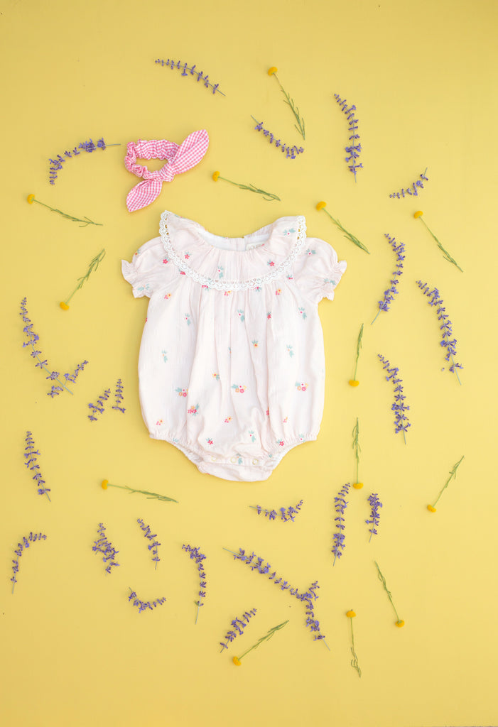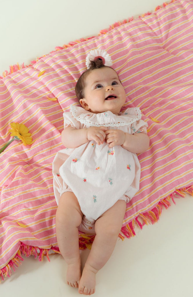 Yolia Romper in Pink Bouquet Stripes